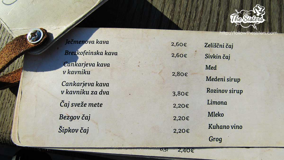 The place is beautiful and the view you get when you sit there – simply stunning. The reason I’m adding it to my list, however, is this very special coffee of theirs. I was lucky enough to go to Slovenska Hisa with a local person, so my friend ordered it for us. But if I was to go there by myself I would have never ordered anything different than a normal Latte. So if you are addicted to coffee just like I am – my advice to you would be to start your visit with this very special treat. The cost of it for two people was €3, 80. Cheers!