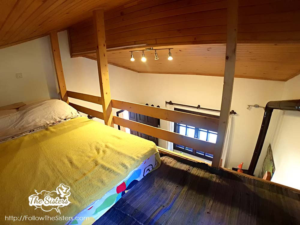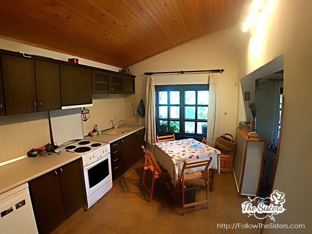 The Little House consists of a corridor with a wardrobe, huge bathroom, fully equipped kitchen, dining table, a living room/bedroom, and a second bed on a wooden platform above the main room. When I say fully equipped kitchen – I mean it. You’ll find literally anything you may think of to prepare a meal.