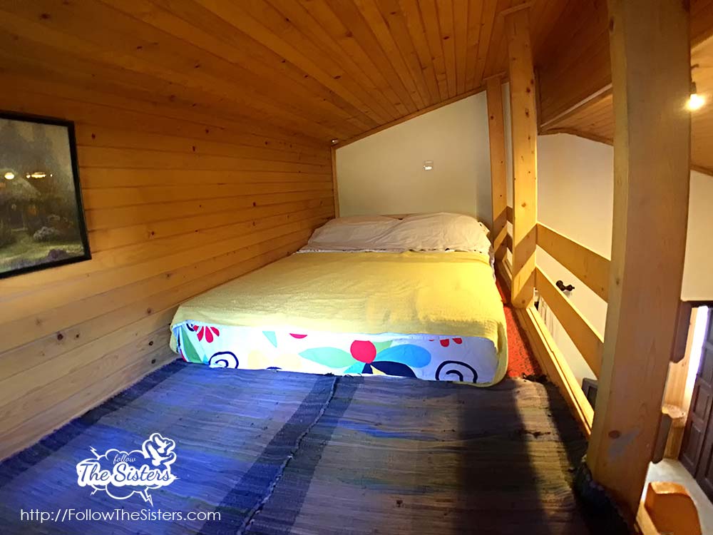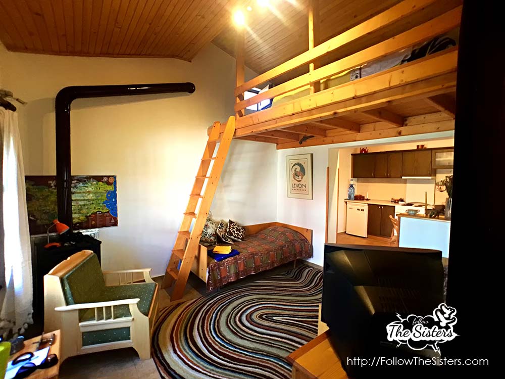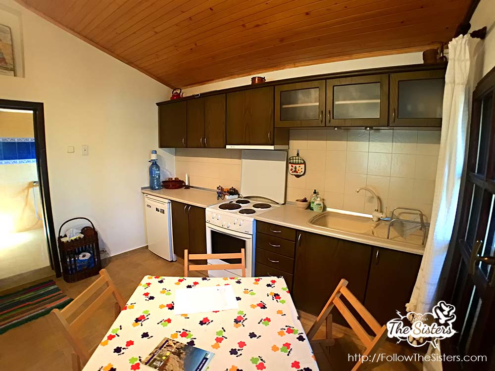 The Little House consists of a corridor with a wardrobe, huge bathroom, fully equipped kitchen, dining table, a living room/bedroom, and a second bed on a wooden platform above the main room. When I say fully equipped kitchen – I mean it. You’ll find literally anything you may think of to prepare a meal.