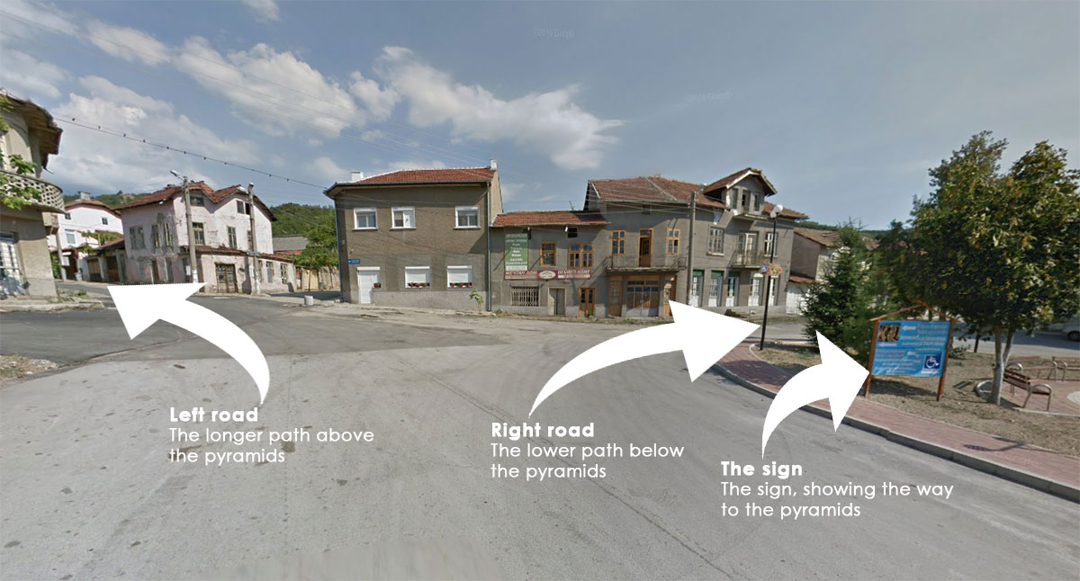 After you take a turn you’ll drive straight for few kilometers until you reach the center of the village. You have two options there. Option one is to take the road on the right, towards the path which opens a view to the pyramids. This is the so-called “easy path”, optimized even for people in wheelchairs.